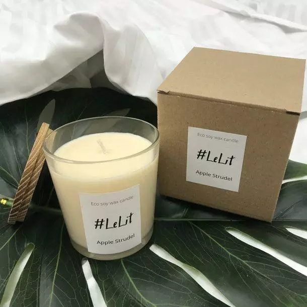 Аромасвеча в стеклянном стакане LeLit Apple Strudel с предсказанием.