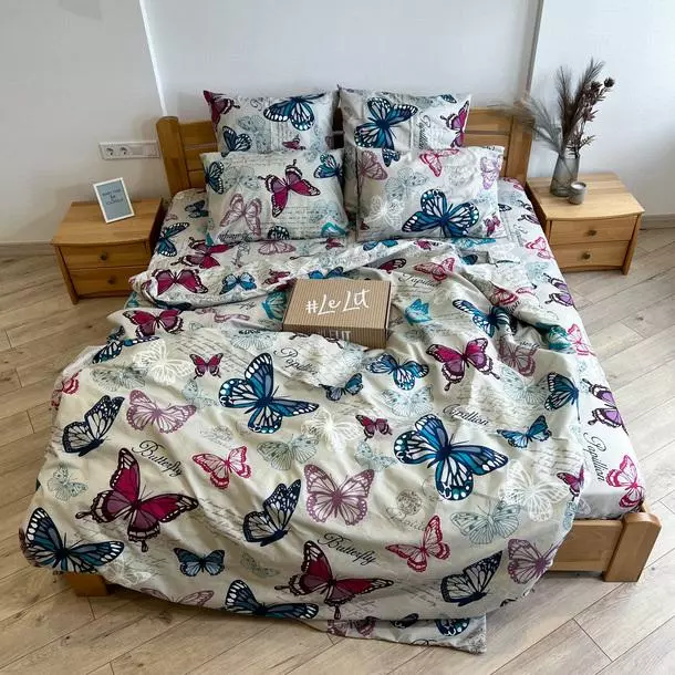 Евро постельное белье LeLIT 0004 светло-серое с ярким принтом "Разноцветные бабочки"