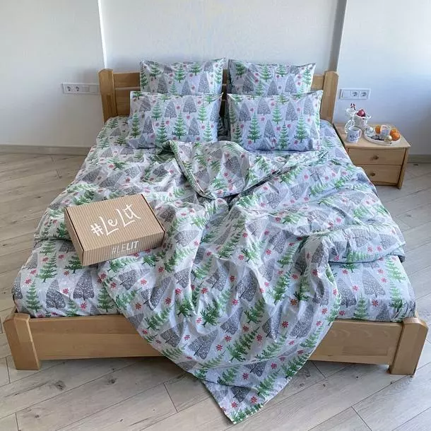 Евро постельное белье LeLIT 0741 белое с принтом "Елки".