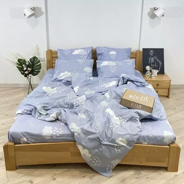 Евро постельное белье LeLIT 0831 нежно-голубое с принтом "Тучки"