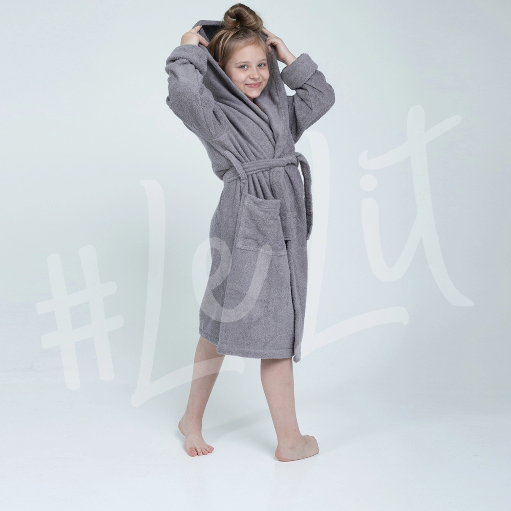 Махровый детский халат от ТМ LeLIT Space Grey Robe с длинными рукавами и капюшоном