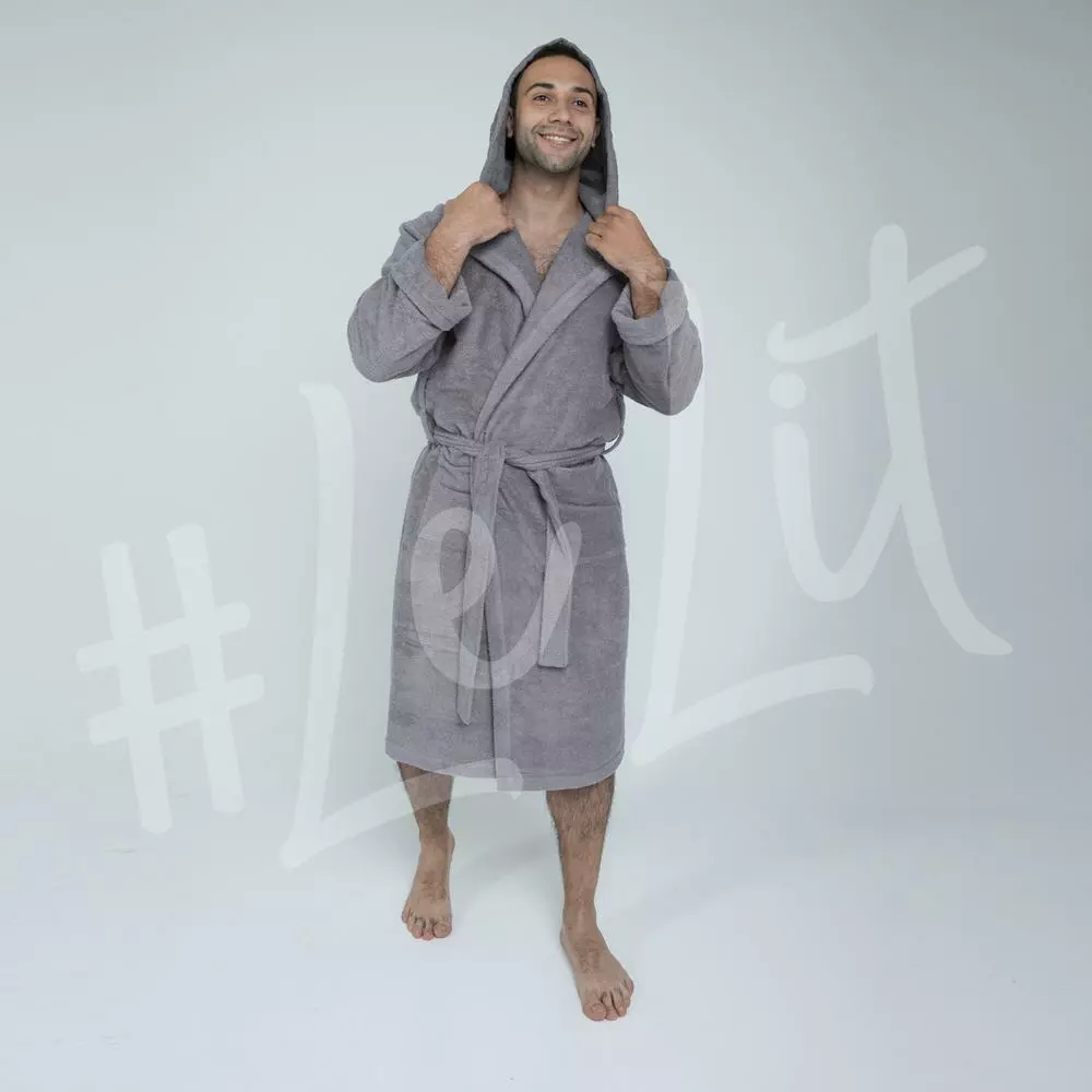 Махровый мужской халат LeLIT Space Grey с капюшоном