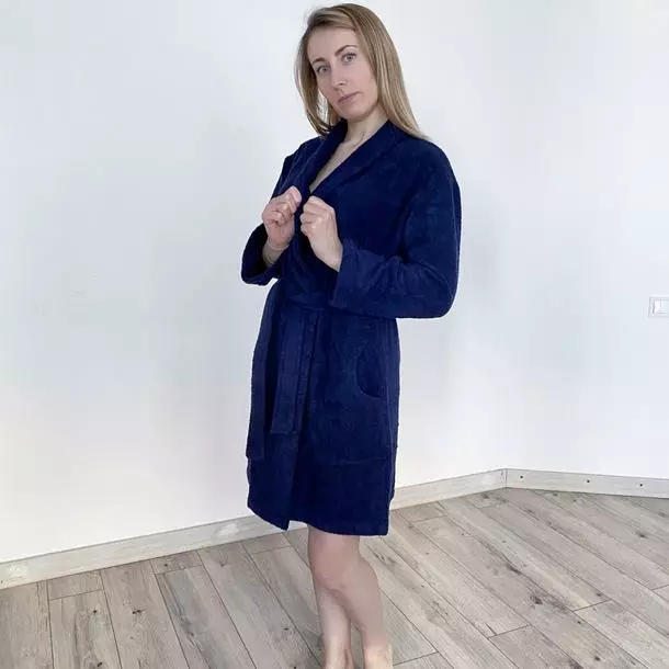 Махровый женский халат LeLIT Navy Blue без капюшона.