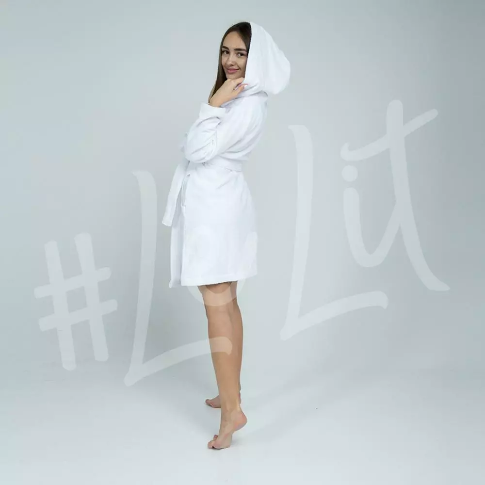 Махровый женский халат LeLIT White c капюшоном
