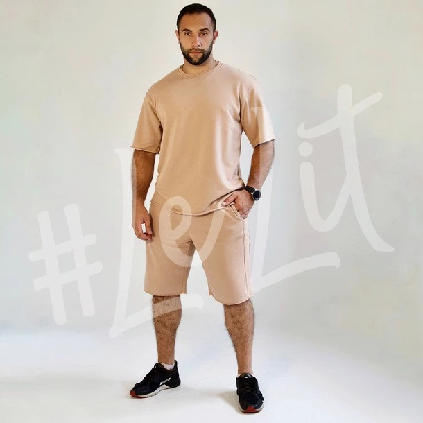 Мужской летний костюм Бежевый от ТМ «LeLIT» шорты + футболка.
