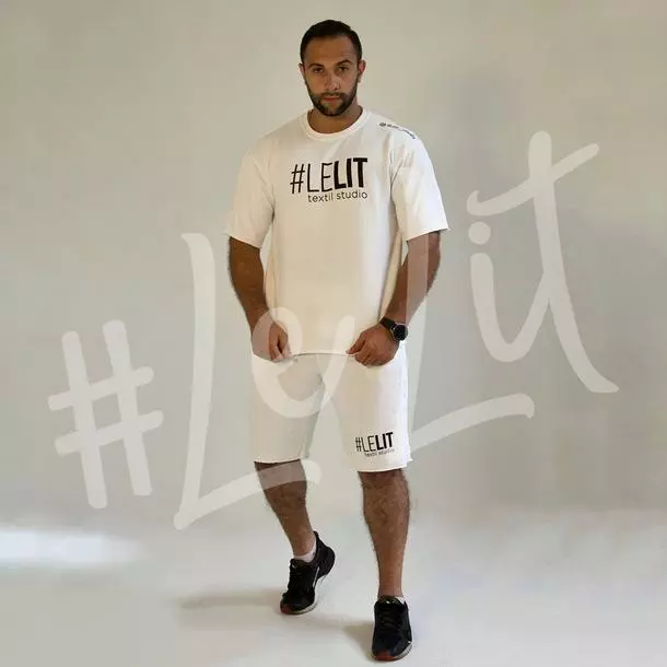 Мужской летний костюм с принтом Белый от ТМ «LeLIT» шорты + футболка.