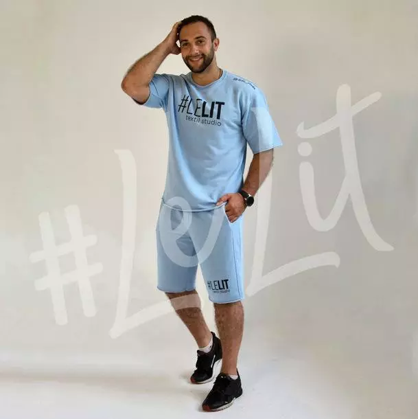 Мужской летний костюм с принтом Голубой от ТМ «LeLIT» шорты + футболка.