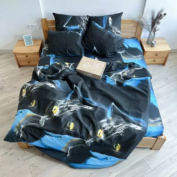 Семейное постельное белье LeLIT 0014 чёрно-синее с принтом "Кошачий глаз"