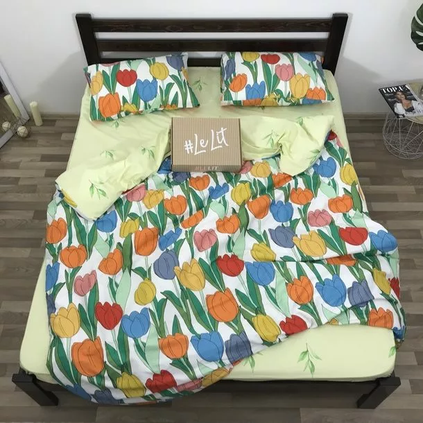 Семейное постельное белье LeLIT 0777 салатное с принтом "Тюльпаны"