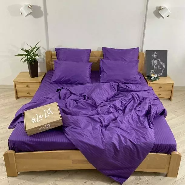 Семейное постельное белье LeLIT 0822 темно-фиолетовое страйп