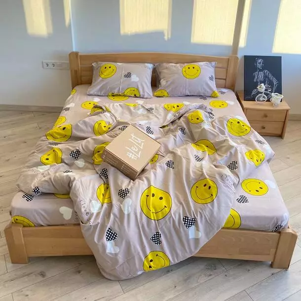 Семейное постельное белье LeLIT 0827 бежевое с принтом "Смайл"