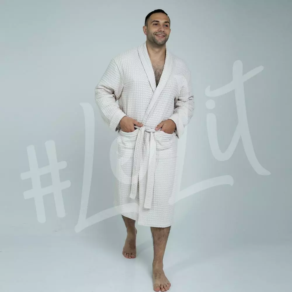 Вафельный мужской халат от ТМ LeLIT с длинными рукавами, без капюшона