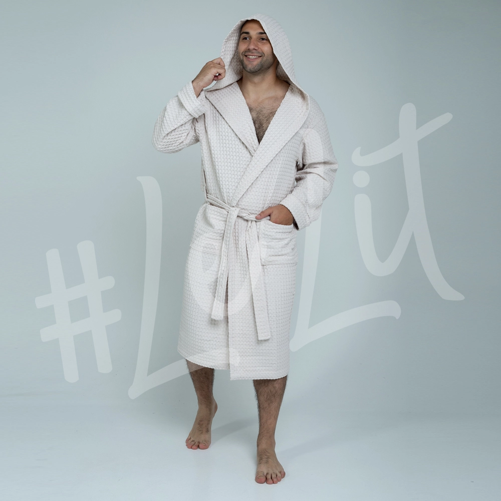 Вафельный мужской халат LeLIT Вeige с капюшоном