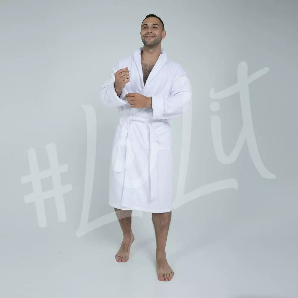 Вафельный мужской халат LeLIT White без капюшона