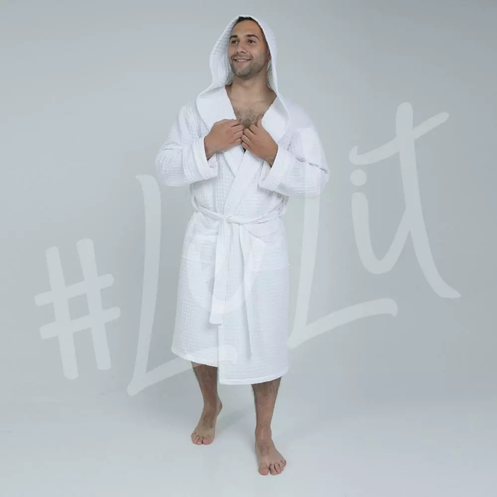 Вафельный мужской халат LeLIT White с капюшоном