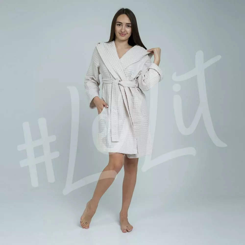 Вафельный женский халат LeLIT Вeige с капюшоном