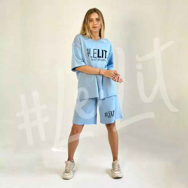 Женский летний костюм с принтом Голубой от ТМ «LeLIT» шорты + футболка.