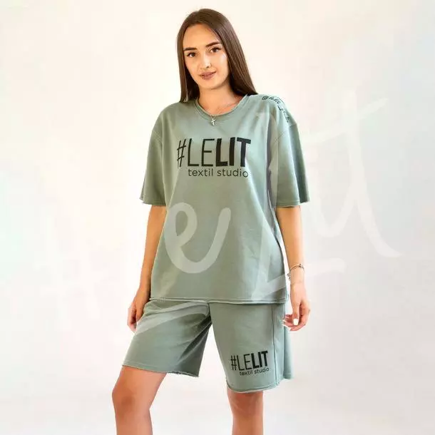 Женский летний костюм с принтом Хаки от ТМ «LeLIT» шорты + футболка.
